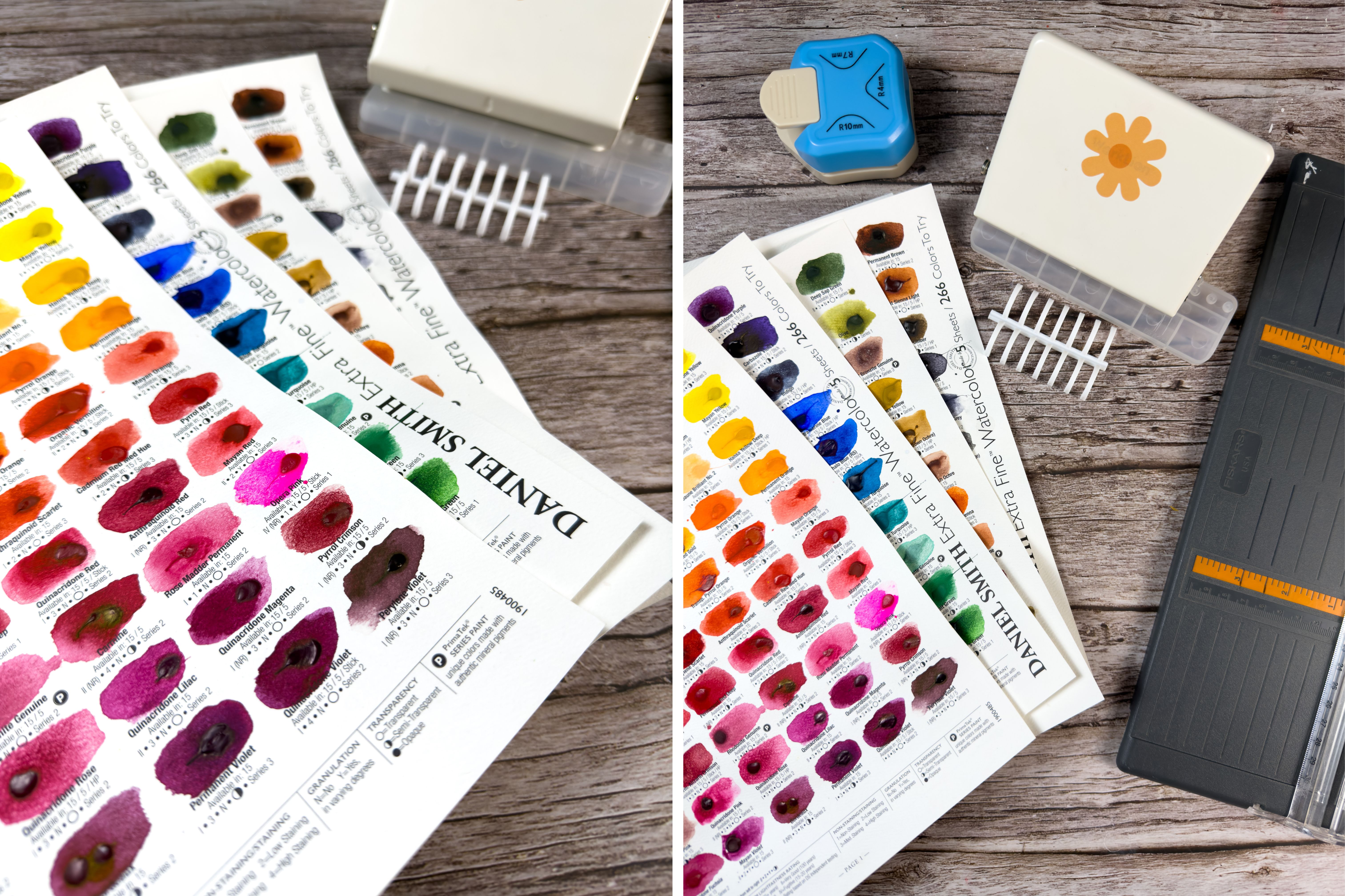 This simple DIY project transforms the full Extrafeine™ Wasserfarbe range into a compact, interactive reference you’ll actually use. Think of it as part color library, part inspiration tool, and part planning companion.