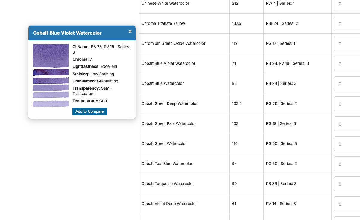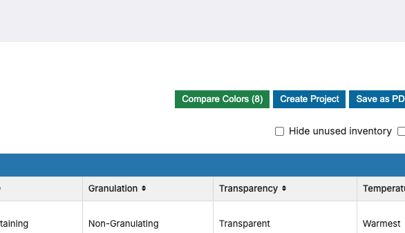 También puedes seleccionar varios colores usando las casillas de verificación y hacer clic en "Comparar colores" para verlos uno al lado del otro. (El botón mostrará entre paréntesis cuántos colores has seleccionado).