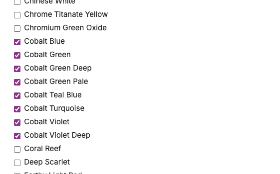 - Deseleccione todos los colores seleccionados previamente (elimine las marcas de verificación azules) para comenzar una nueva lista.