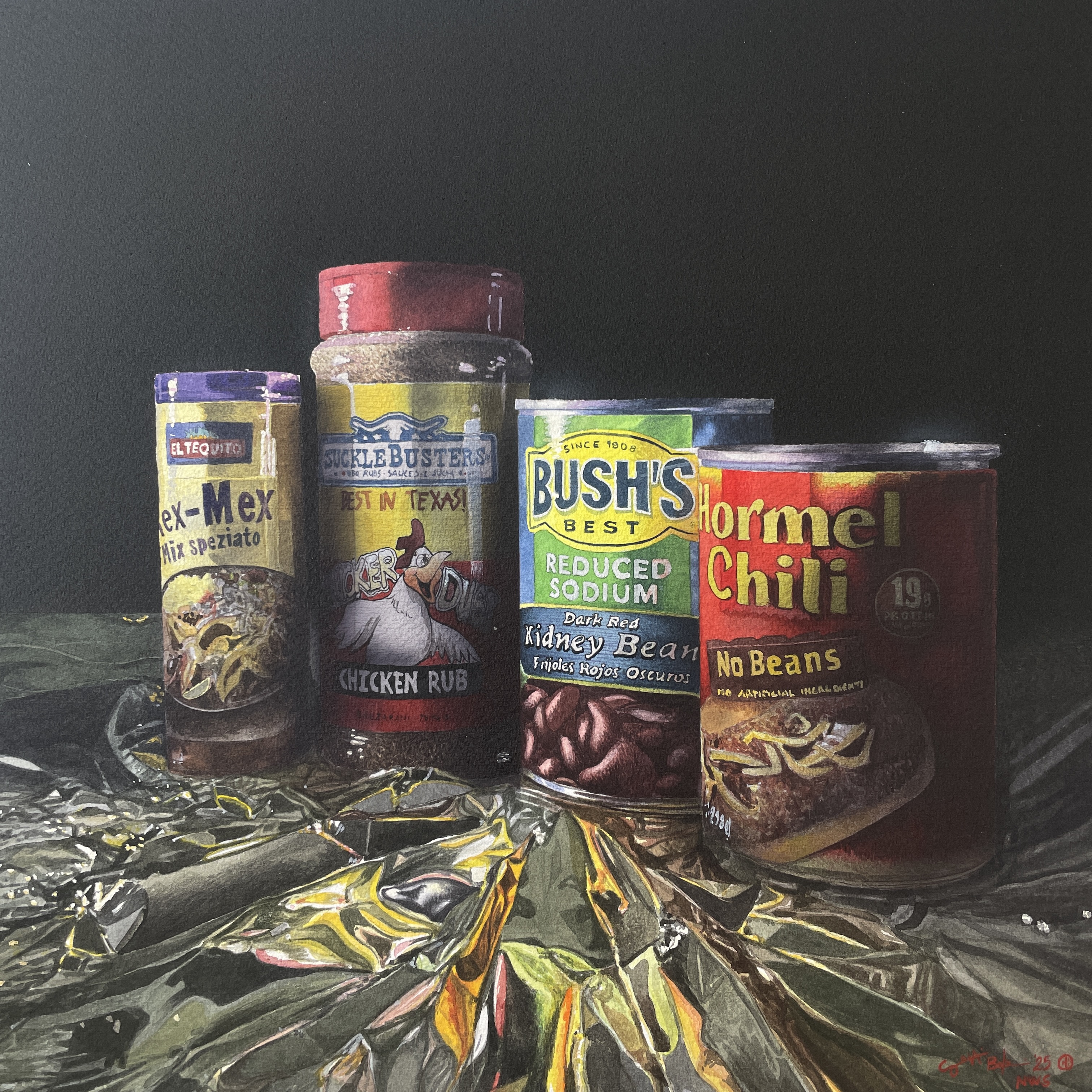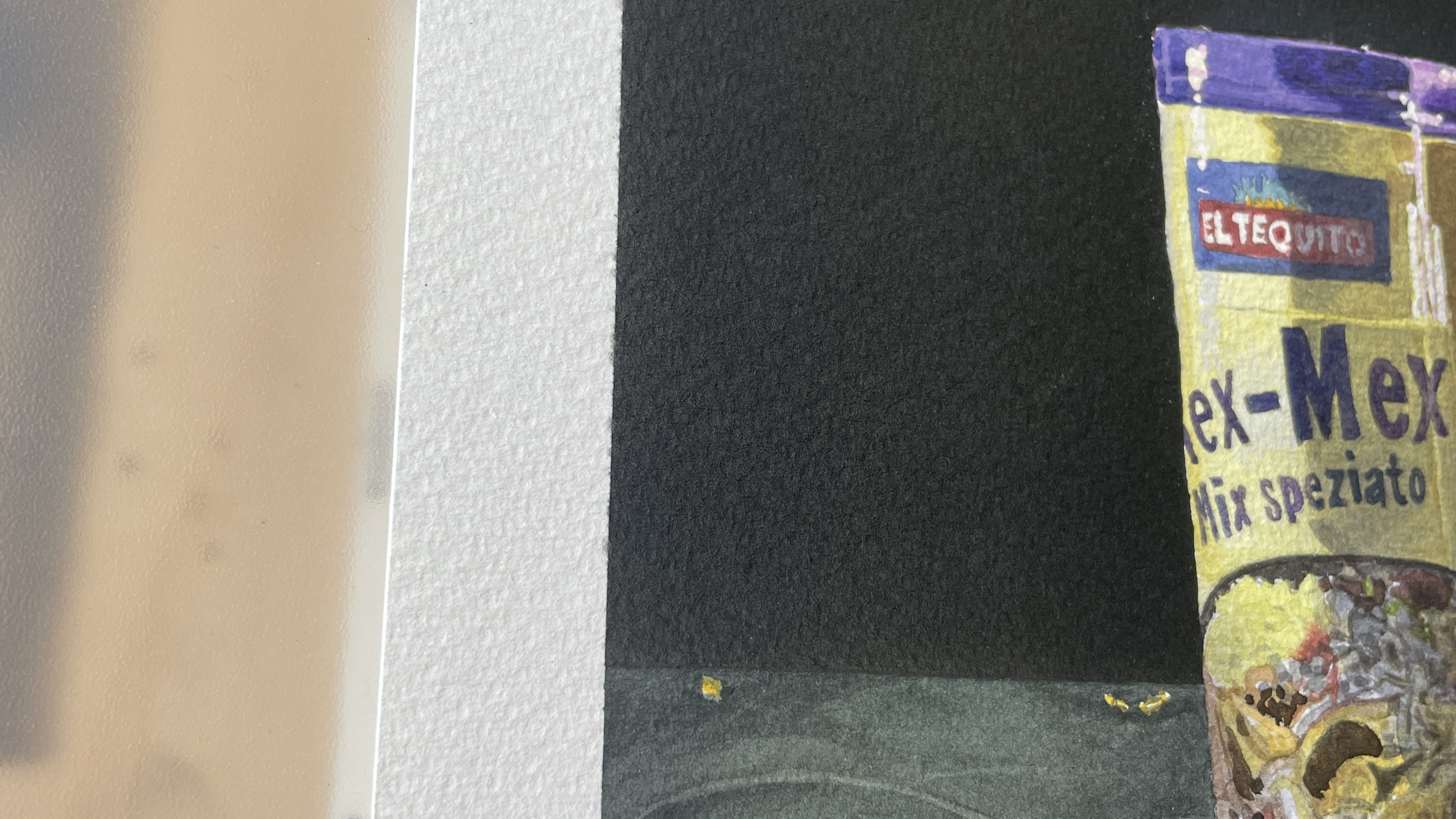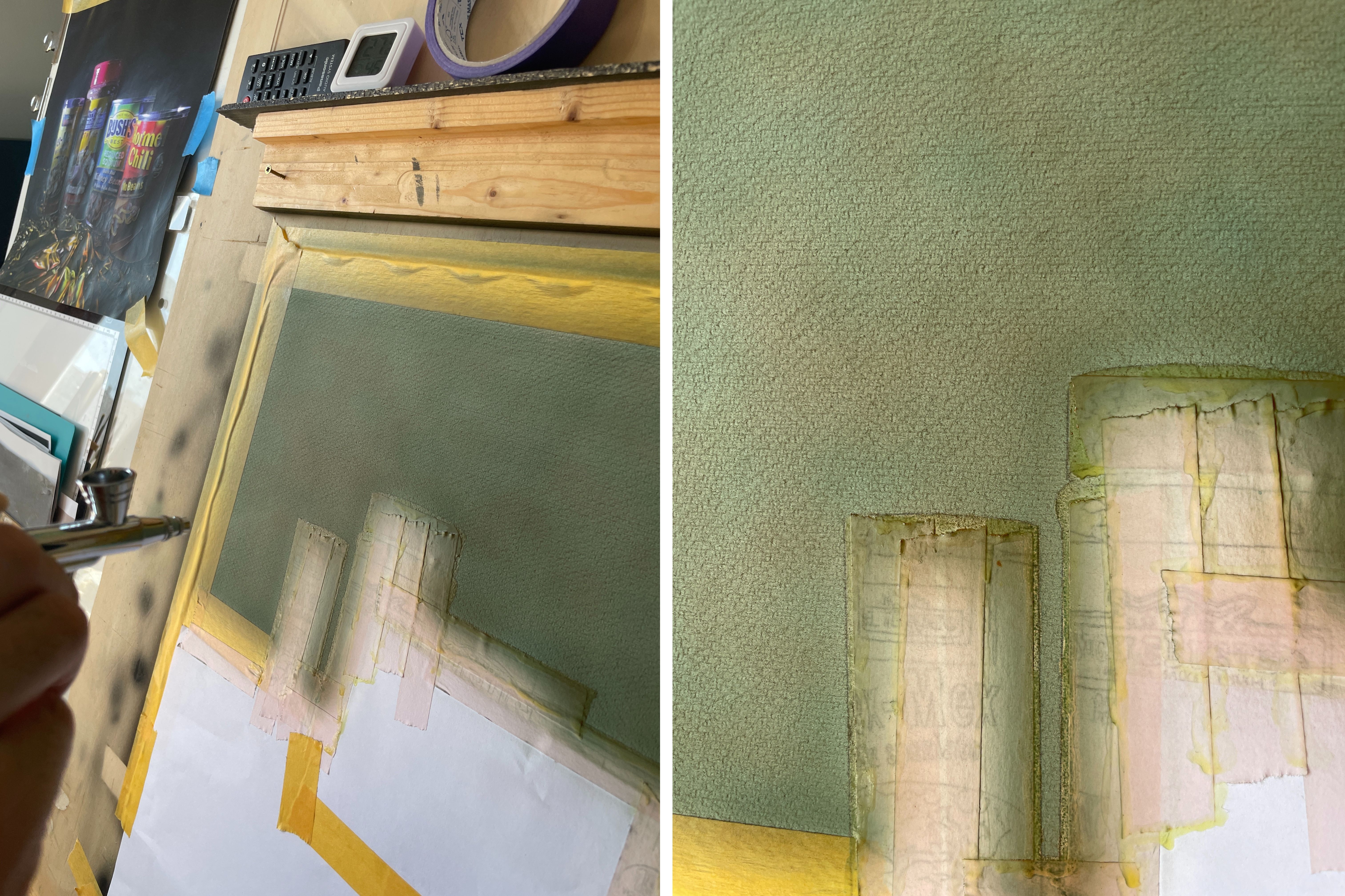 L'idée d'utiliser un aérographe m'est venue de mon désir de créer un fond parfait et homogène, sans un seul coup de pinceau visible, dans le cadre de mes études sur l'aquarelle hyperréaliste haute définition.