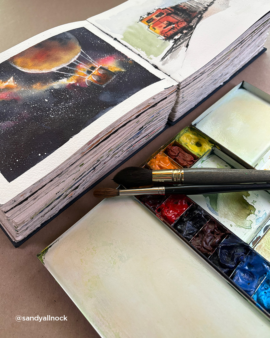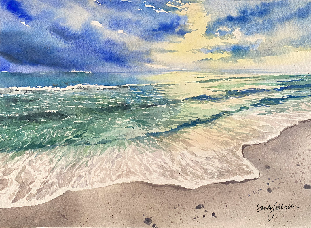 Sandy Allnock esplora molti medium nella sua arte e nei suoi corsi e insiste nell'utilizzare materiali di alta qualità per raggiungere i risultati che immagina. Gli artisti meritano buoni materiali: imparare con materiali di qualità inferiore non fa che allungare la curva di apprendimento! Oltre vent'anni fa, la lunga e brillante carriera di Sandy come graphic designer ha lasciato il posto al suo sogno d'infanzia di diventare un'artista e un'insegnante a tempo pieno. Ora crea di tutto, dai paesaggi agli schizzi urbani, dagli astratti all'iperrealismo, dai treni alle farfalle, dalle galassie agli oceani: qualsiasi soggetto può trovare la sua strada sulla carta attraverso le sue pennellate. Una delle sue più grandi gioie è vedere i suoi studenti affrontare nuove sfide, impegnarsi e crescere, perché questo la ispira a fare lo stesso.