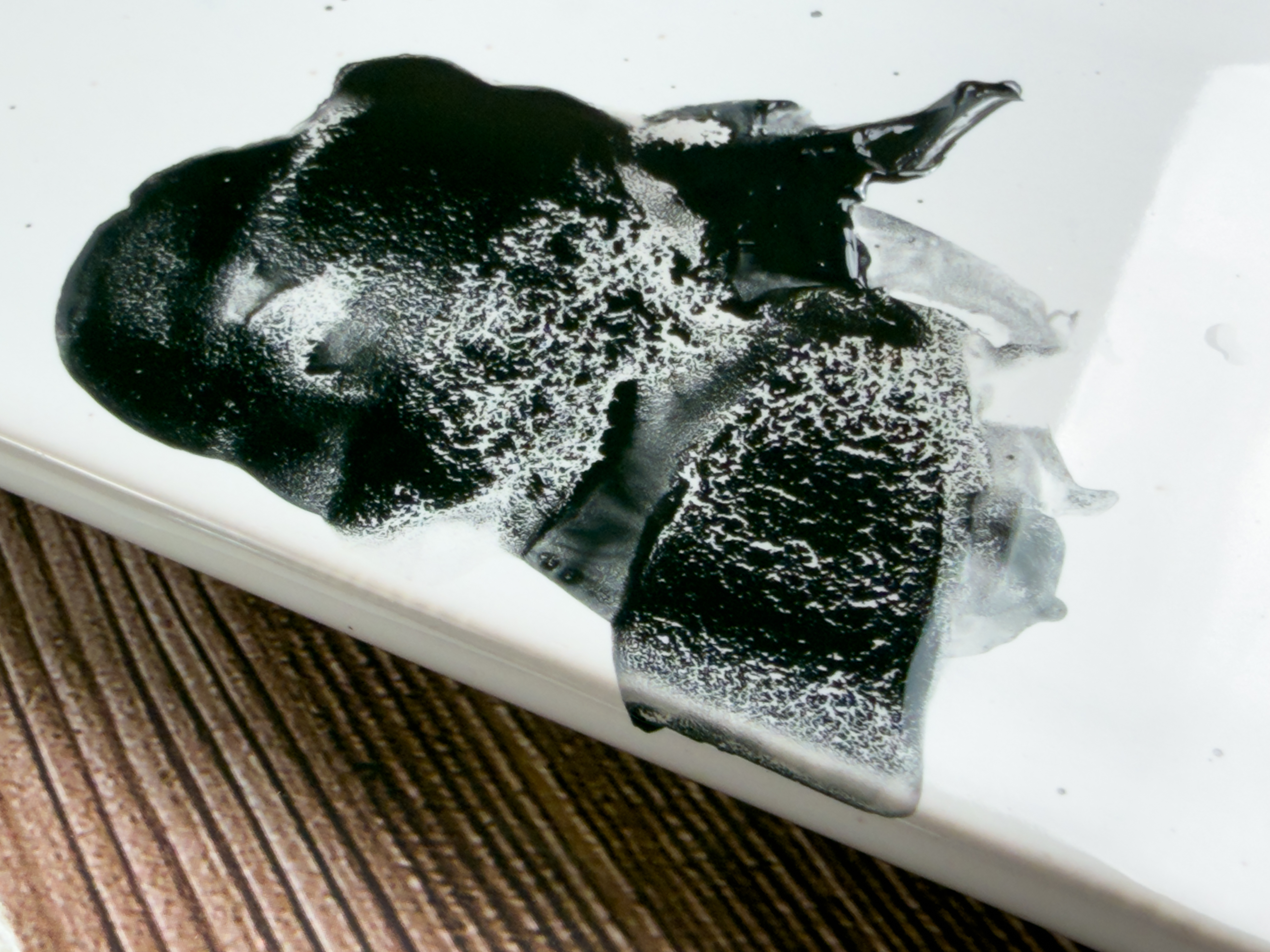- Voor maximale korreligheid / “maanlandschap”-effect, gebruik een minimale hoeveelheid water en een platte kwast om Lunar Black op of naast Opera Pink aan te brengen — of druppel nat-op-nat zoals beschreven.