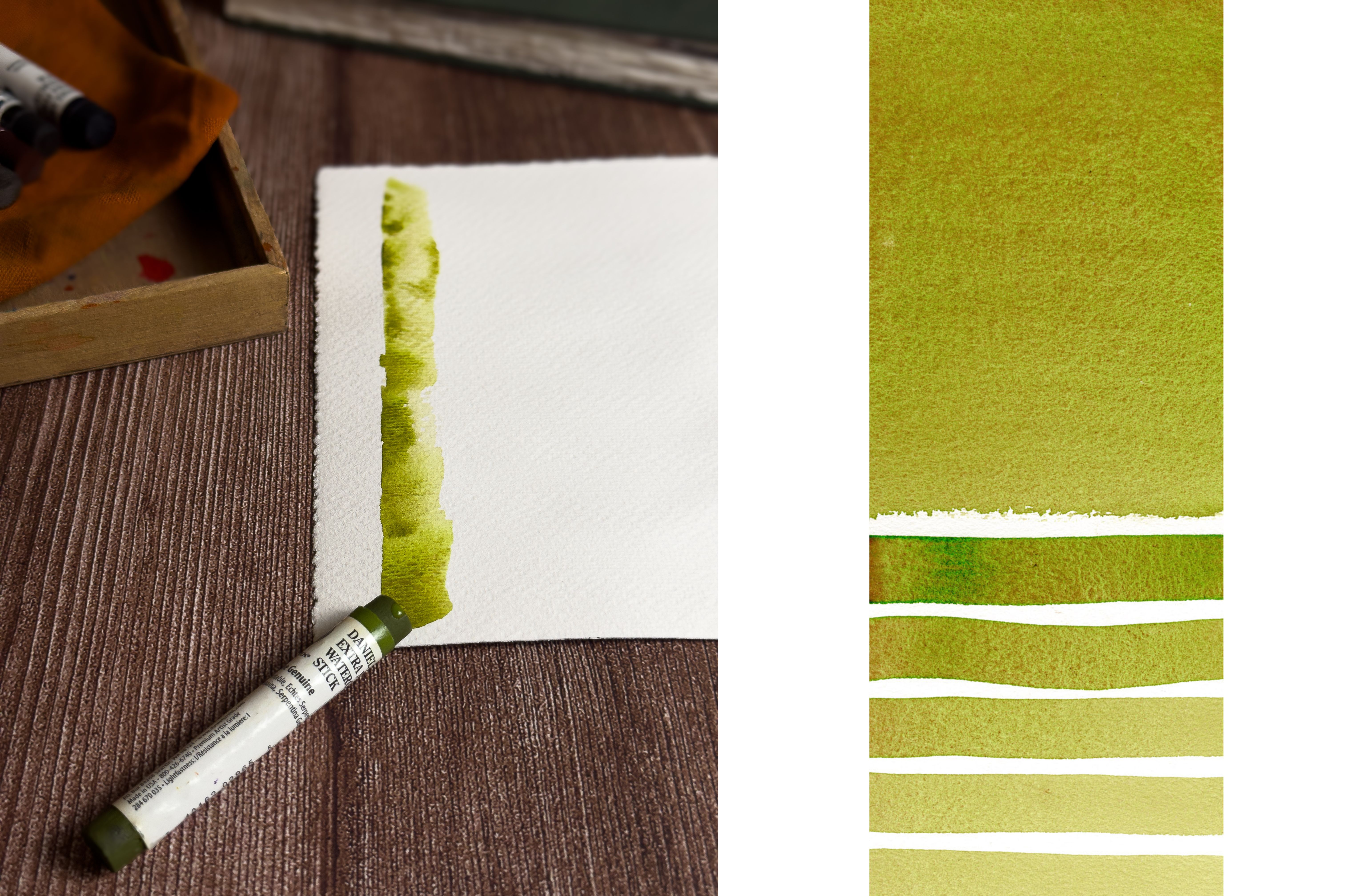 - Behavior & uses: In a wash, Serpentine spreads with a gentle, semi-transparent green tone; in heavier applications, subtle specks of scarlet emerge as it settles — adding complexity and intrigue.