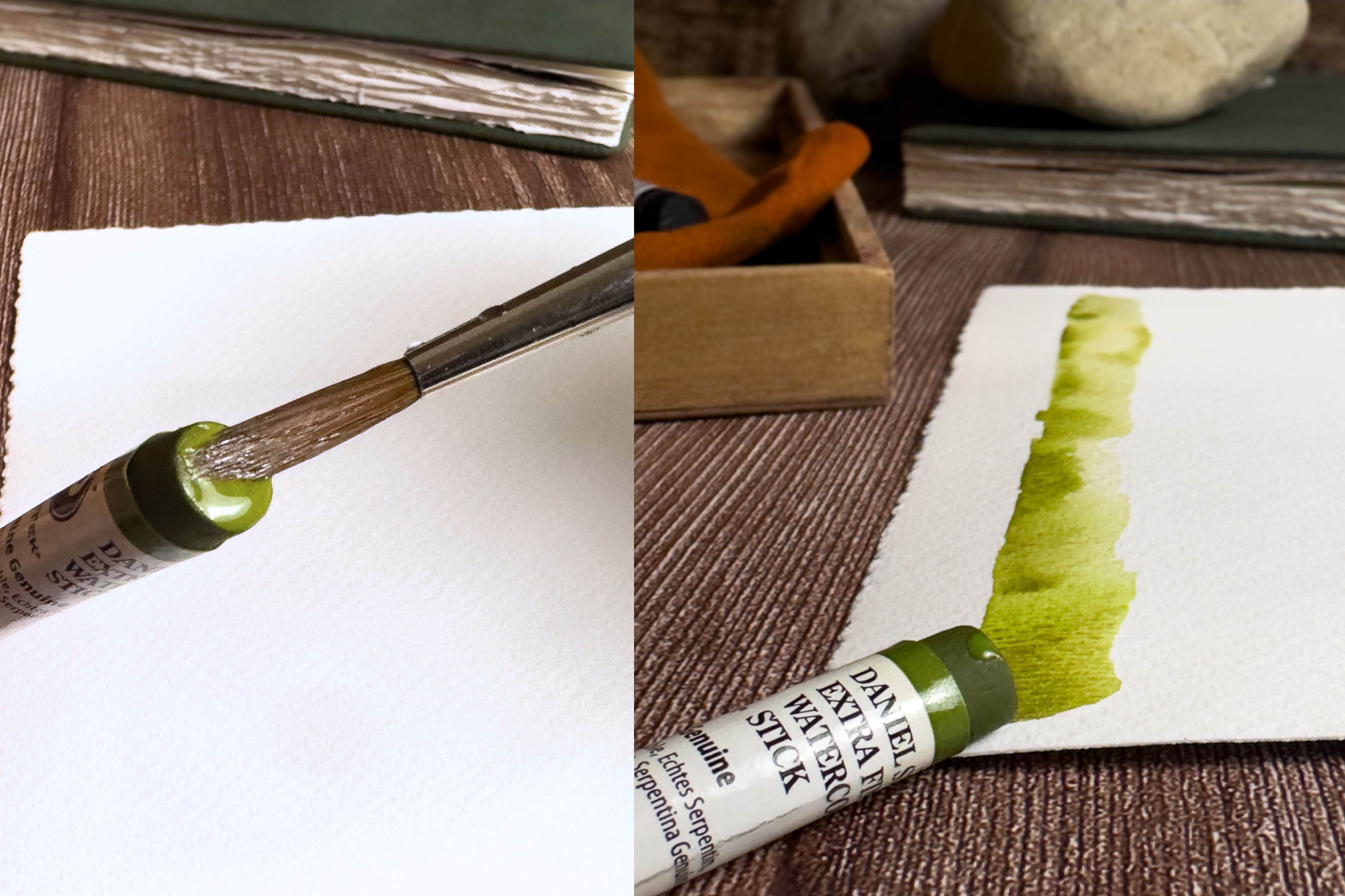 - Travel/lightweight use: As sticks, you can hold them in your fingers and use a wet brush to activate; or “draw” color directly into a travel palette or rewet in pans — ideal for plein air or sketch journaling.