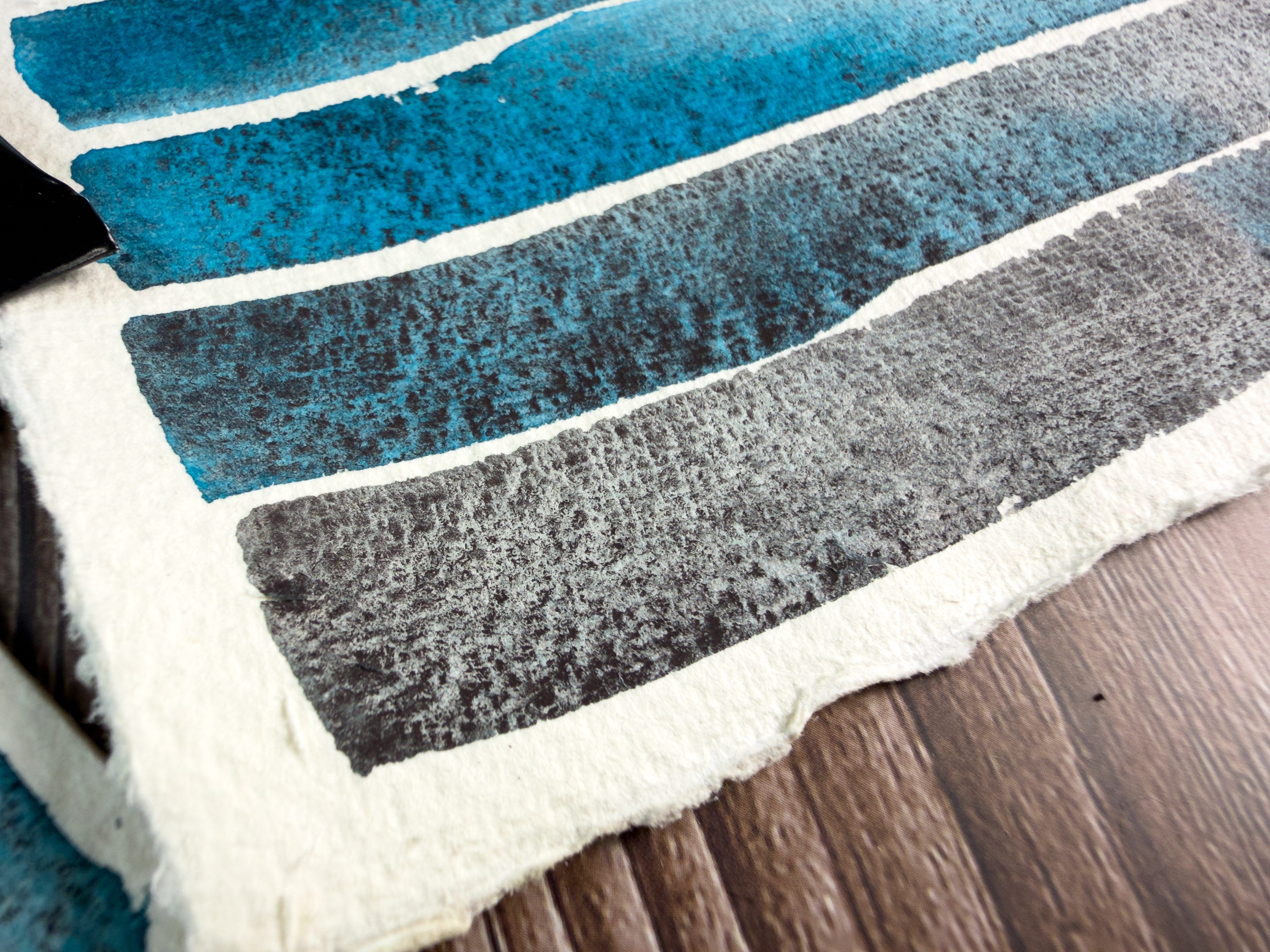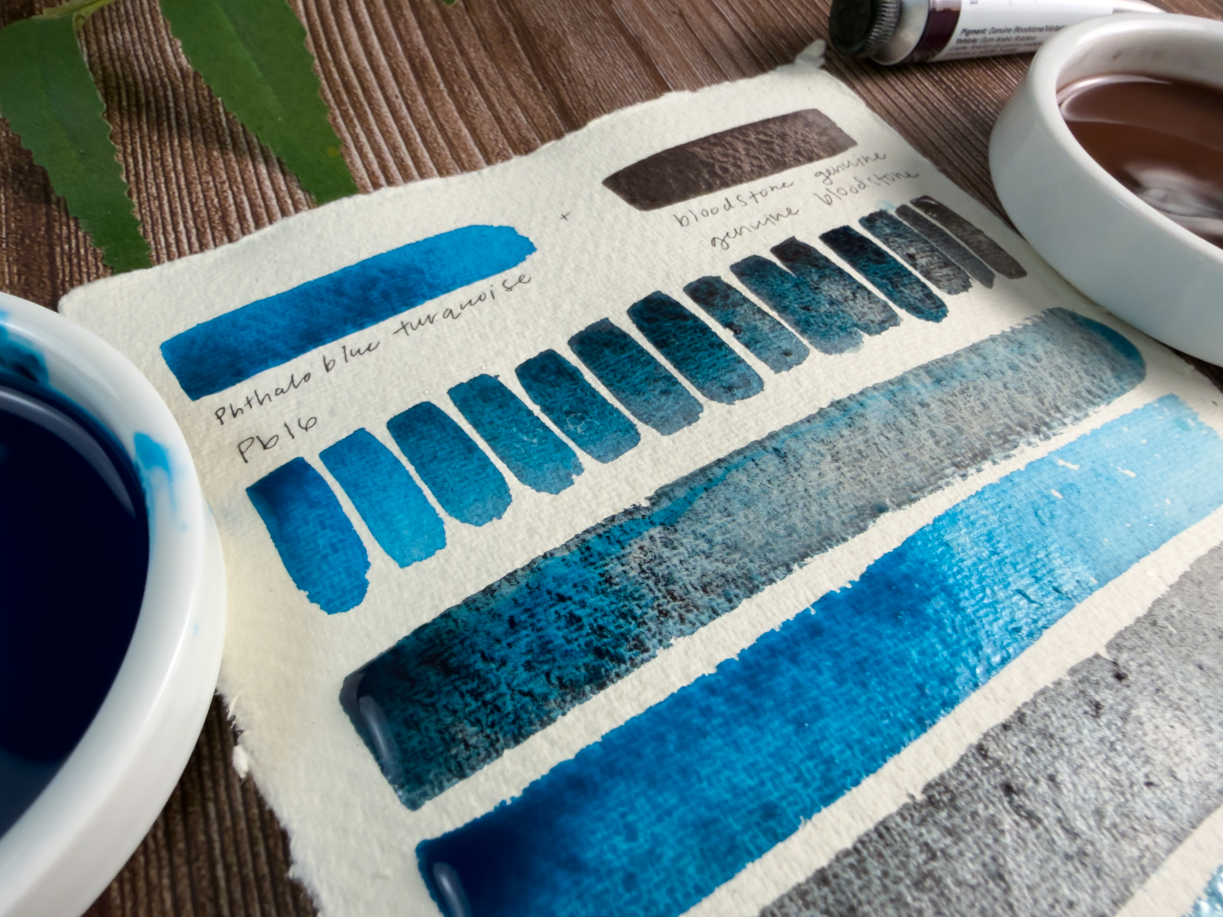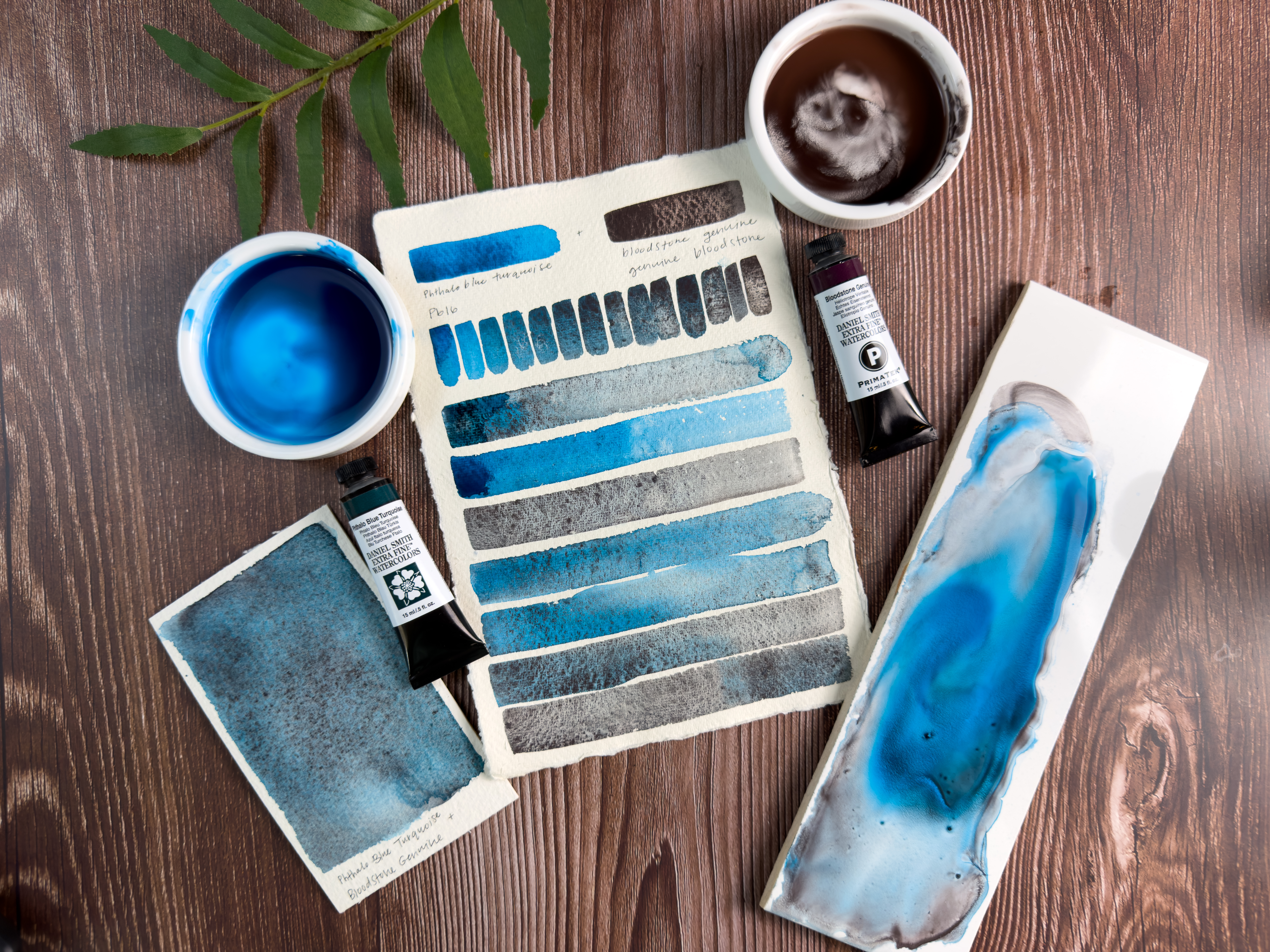 When Phthalo Blue Turquoise meets Bloodstone Genuine, the result is captivating. The smooth, staining turquoise pigment intertwines with the granulating, earthy mineral to create a cool, stormy mix that feels both deep and dynamic.