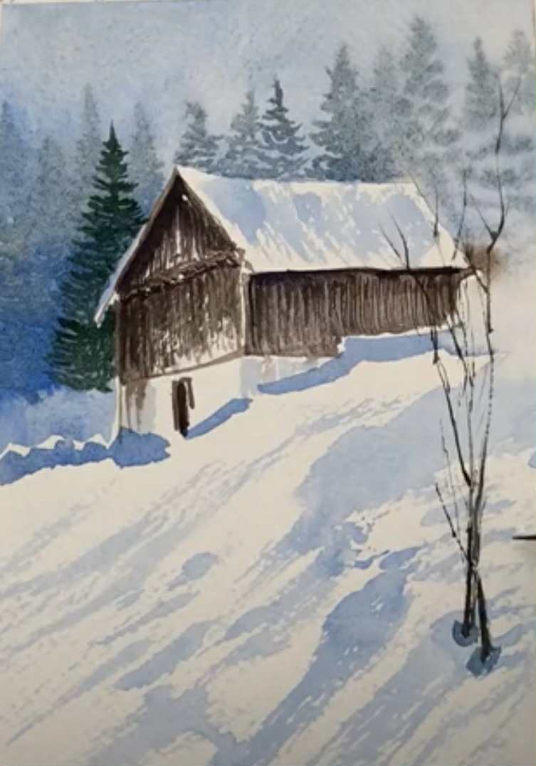 Sabine’s approach reminds us that snowy landscapes aren’t about painting “white”—they’re about painting ánh sáng. With a few thoughtful washes, intentional value shifts, and a focus on atmosphere, you can create a winter scene filled with quiet beauty.